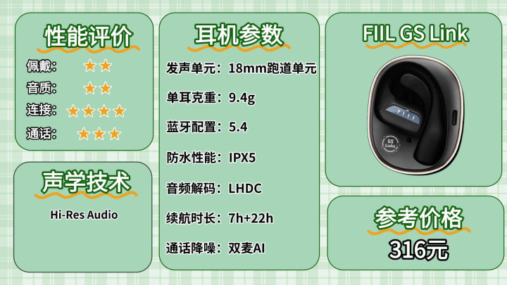 开放式耳机建议选哪种,耳机表面覆盖亲肤涂层,佩戴触感柔软,整体重量适中,长时间佩戴耳道不会感觉胀痛,适合日常佩戴。但由于没有入耳结构的密封性,在嘈杂环境中可能需要调高音量才能听清。音质表现上17×12mm 大动圈单元带来较饱满的声音,人声自然、细节平顺,中低频表现不错。不过低频下潜的力度偏柔,用来听重低音或节奏型音乐时冲击力稍弱,属于偏均衡偏舒适的一类调音风格。采用蓝牙 5.2,连接稳定,但对游戏用户来说会有轻微延迟感。