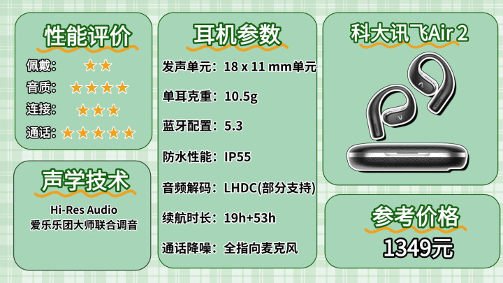 开放式耳机建议选哪种,佩戴体验上,A ir 2 单耳 10.5g 的重量结合 0.8mm 韧性骨架,稳固性良好,液态硅胶带来较好的贴合感,不过在长时间佩戴时,重量带来的压迫还是比轻型产品更容易察觉。音质方面,搭载的 18×11mm 高分子单元和 Hi-Res Audio 认证保证了高频和人声的清晰度,乐器层次感分明,适合注重细节表现的用户,但在低频沉浸感和氛围渲染上明显不足。功能配置上,蓝牙 5.3 稳定连接无压力,支持双设备和多样化的智能功能,尤其在办公场景中优势明显,但缺点是这些核心功能严重依赖 App,使用过程中对手机系统版本也有要求,整体门槛偏高。