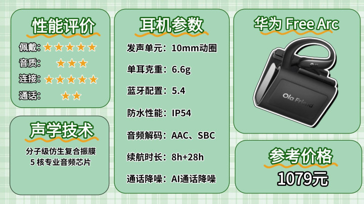开放式耳机建议选哪种,这款耳机外观简约大方,全金属充电盒配合硅胶外套,质感出色。佩戴体验上,单耳仅9.4克,钛合金丝与液态亲肤硅胶结合,耳机贴合稳固,长时间佩戴偶尔会略感紧绷。音质方面,18mm跑道型碳纤维单元提供清晰中高频和自然中低频,但低频力度稍弱,整体偏均衡。功能上,蓝牙5.4连接稳定,续航7小时加充电盒22小时;通话支持双麦AI降噪,但豆包AI部分功能需要付费解锁,对部分用户来说使用体验受到限制。